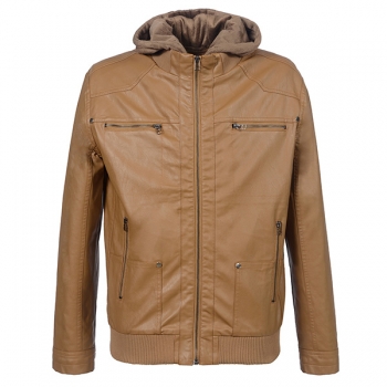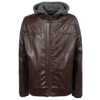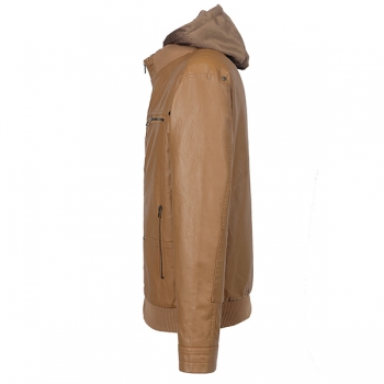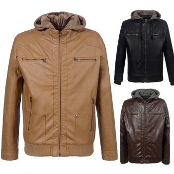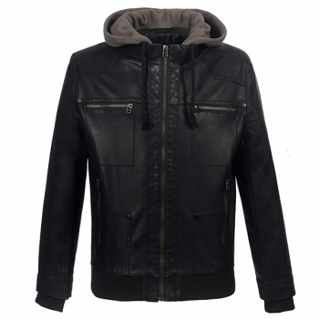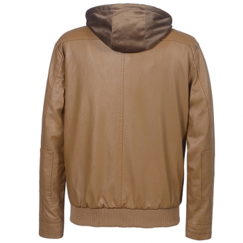 Fashion Detachable Hoodied Artificial Leather PU Jacket for Men