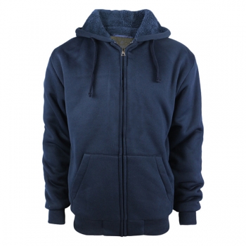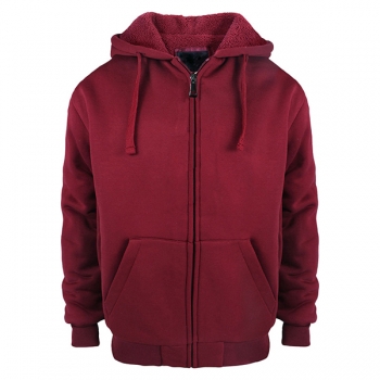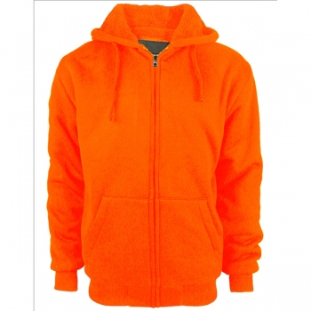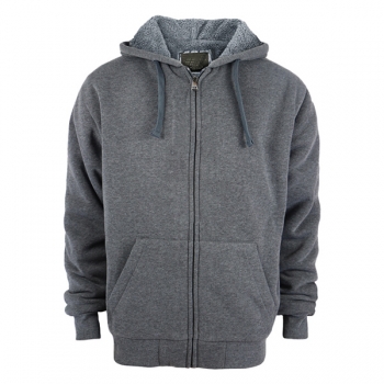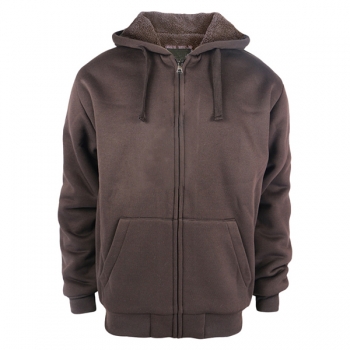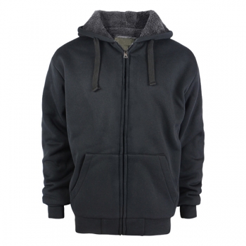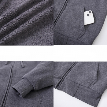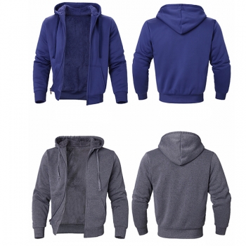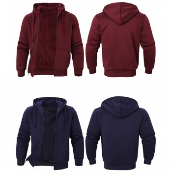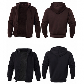 Varm plyschfodrad herrhoodie med huva, dragsko och hel dragkedja