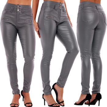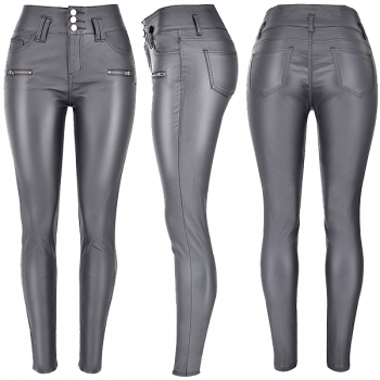 Modebyxor i grått av hög midjemodell med slim fit och stretch i PU-konstläder