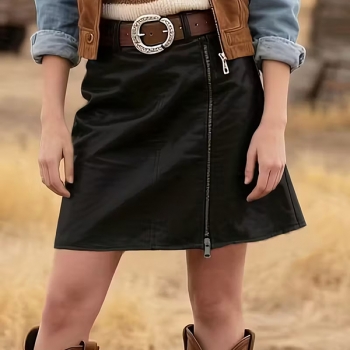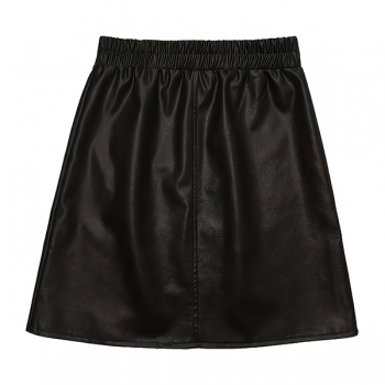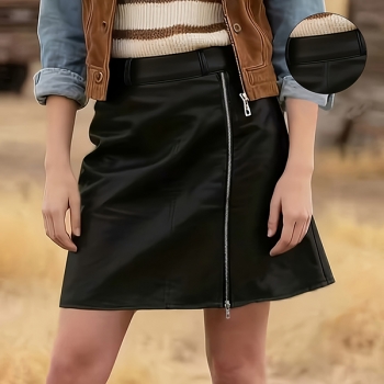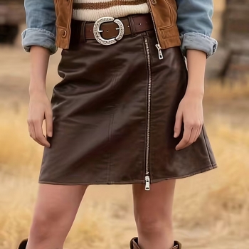 Modern högmidjad kjol i PU-läder – sidodragkedja, slits och resår i midjan (bälte medföljer ej)