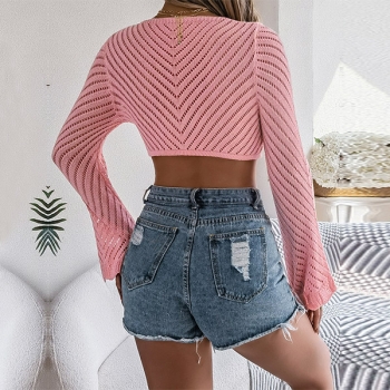 Hålmönstrad Långärmad Knyt-Crop Kofta