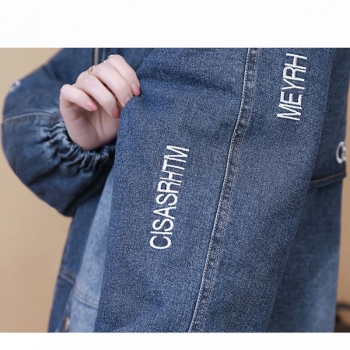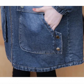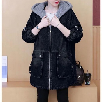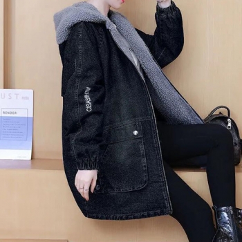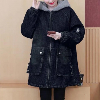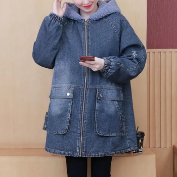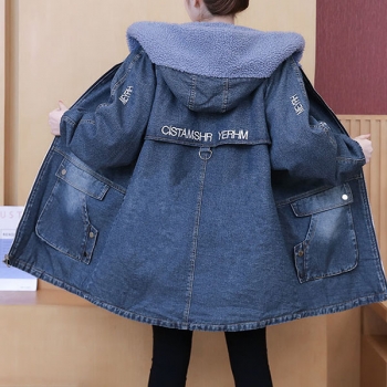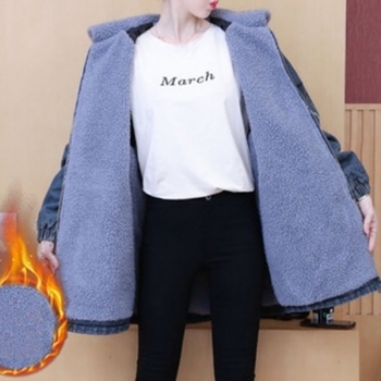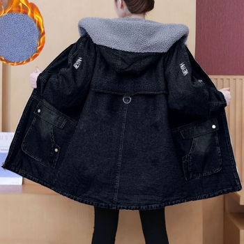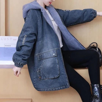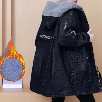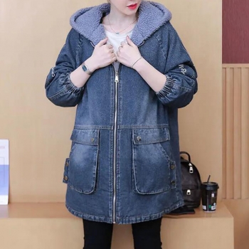 Jeansjacka med huva, plyschfodrad och långärmad – trendig vintage-tvätt