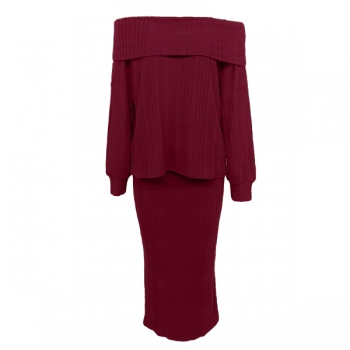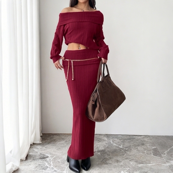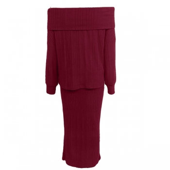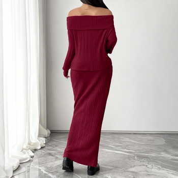 Revised Title: Stickat tvådelat set med off shoulder-top och maxikjol