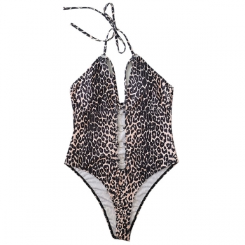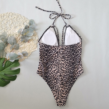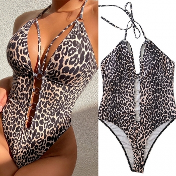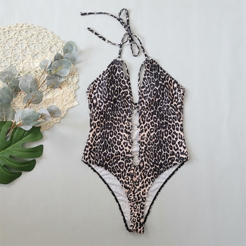 Moderiktig Leopardmönstrad Halterneck O-ring Baddräkt