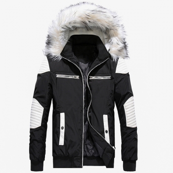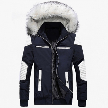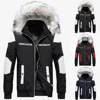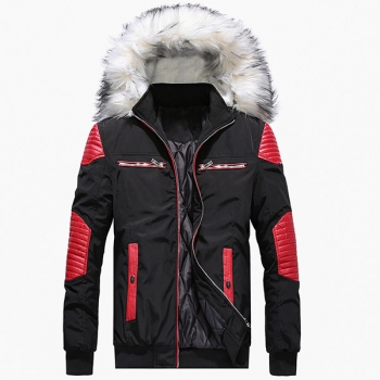 Modekappa för män med skarvad huva i långärmad design och varm konstgjord päls
