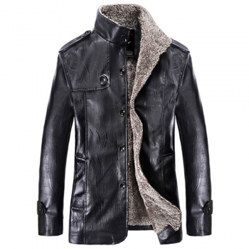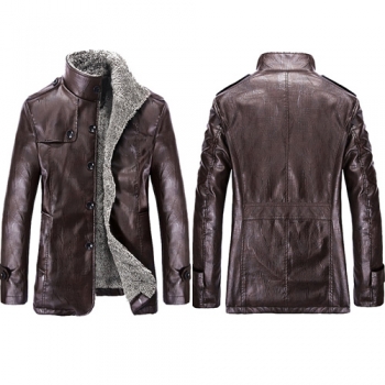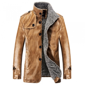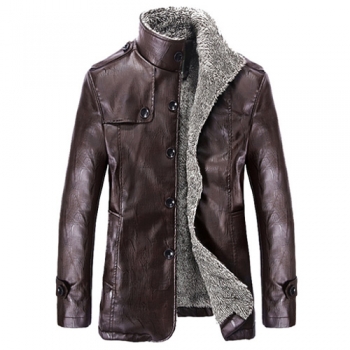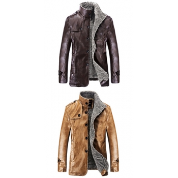 Fashion Long Sleeve Stand Collar Slim Fit Men's PU Leather Coat