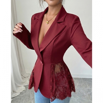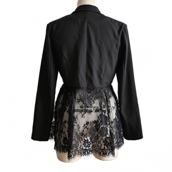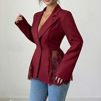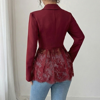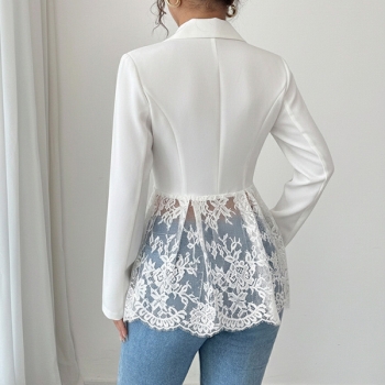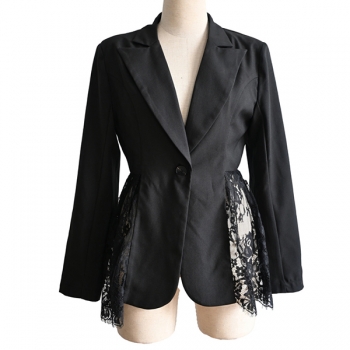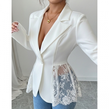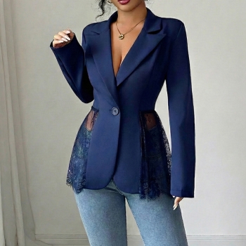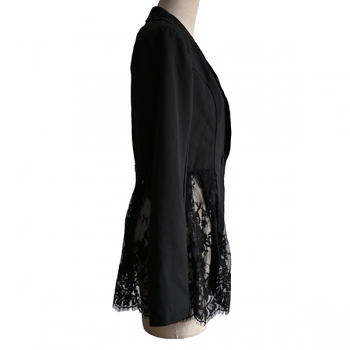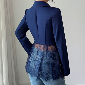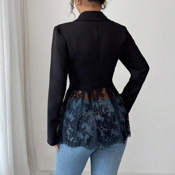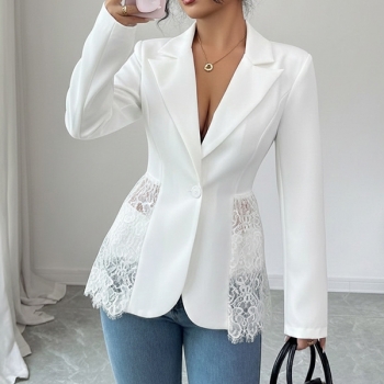 Elegant damkavaj i spets med hakslag, långärmad och dekorativa skarvar