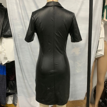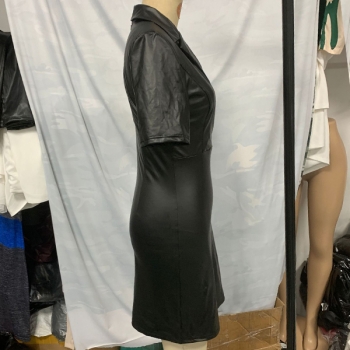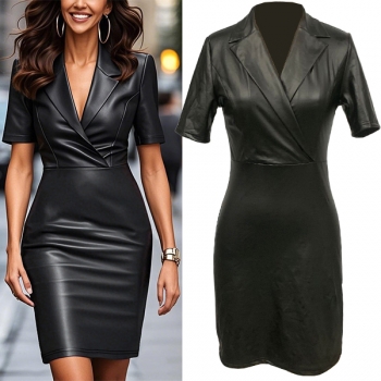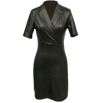 Kortärmad Bodycon-klänning i konstläder med notch-slag