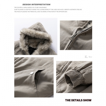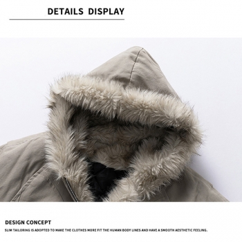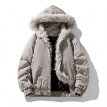 Fashion Plushed Lined Long Sleeve Hooded Jacket for Men