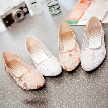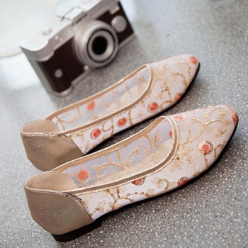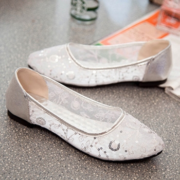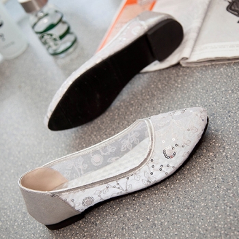 Fashion Pointed Toe Flat Heel Hollow Out Mesh Shoes