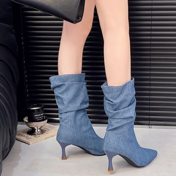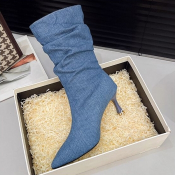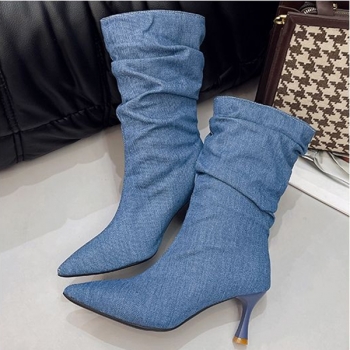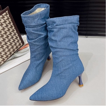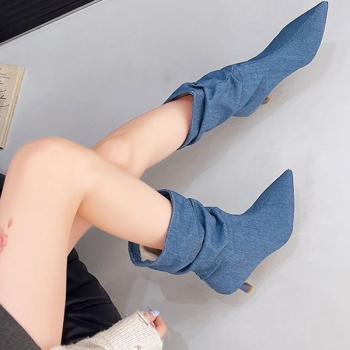 Moderiktiga enfärgade högklackade stövlar med spetsig tå