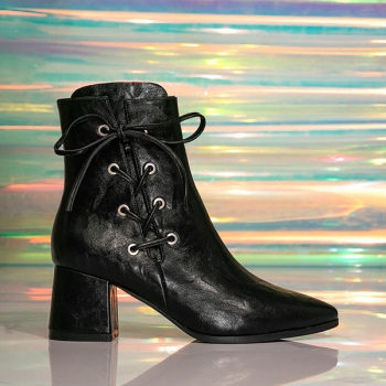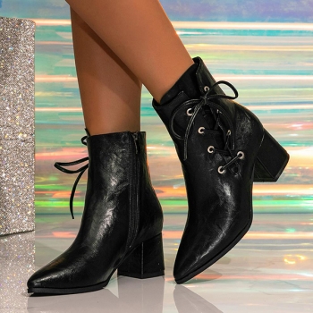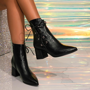Trendiga damankelstövlar med snörning, spetsig tå och stabil blockklack