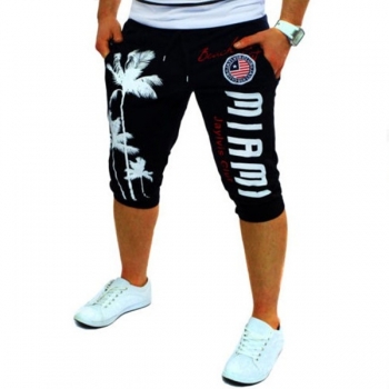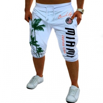 Modernt mönstrade capribyxor för män med dragsko i midjan