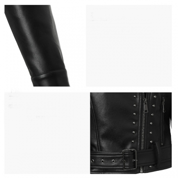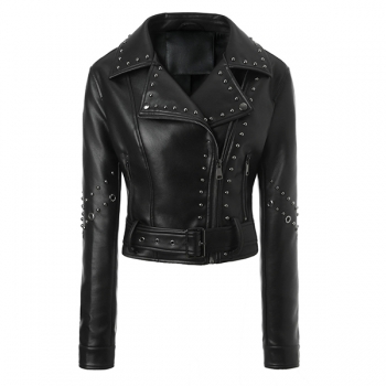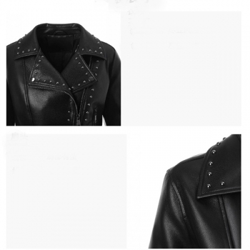 Dam PU-läderjacka med nitar, kavajkrage och snedställd dragkedja, långärmad