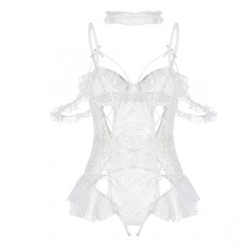 Ruffle Spets Snörning Rosett Spets Underkläder Bodysuit