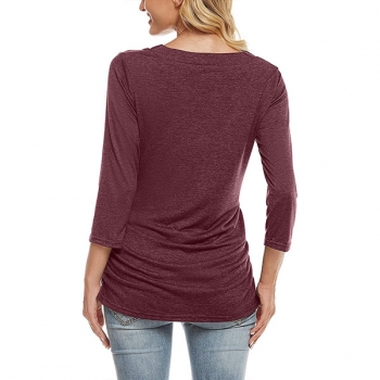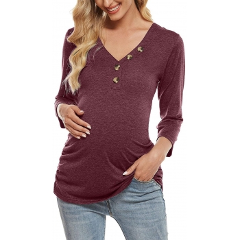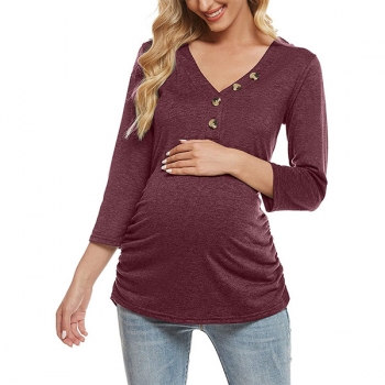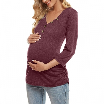 Fashion Solid Color Button V-neck Solid Color Maternity T-shirt
