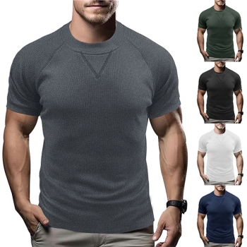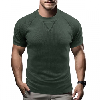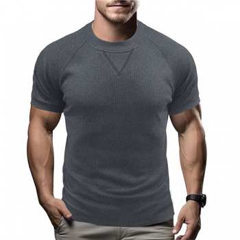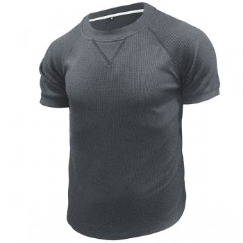 Kortärmad herrskjorta med rund hals i enfärgat mode