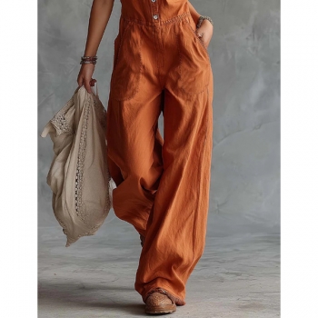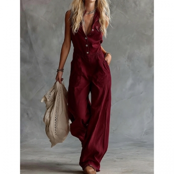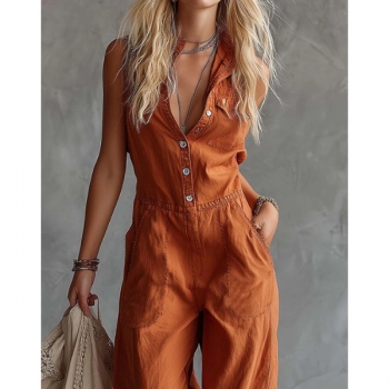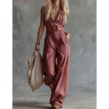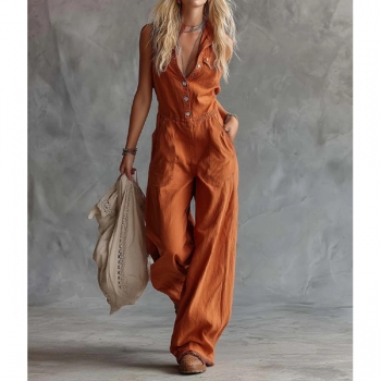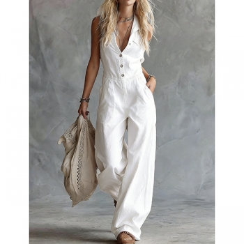 Jumpsuit – ärmlös, enfärgad med vida ben och knäppning framtill, trendig vardagsstil