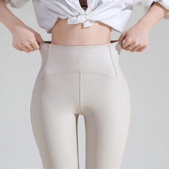 Högmidjade Enfärgade PU Konstläder Skinny Leggings