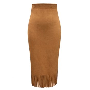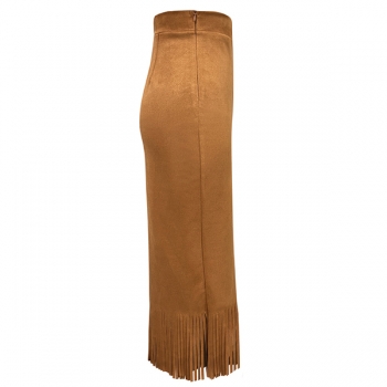 Pennkjol i mocka med hög midja och tofsdetaljer, enfärgad och trendriktig