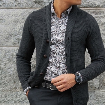 Fashion Solid Color Knitted Cardigan for Men