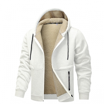 Herrjacka i enfärgad design med varm plyschfoder, dragkedja fram och dragsko i midjan
