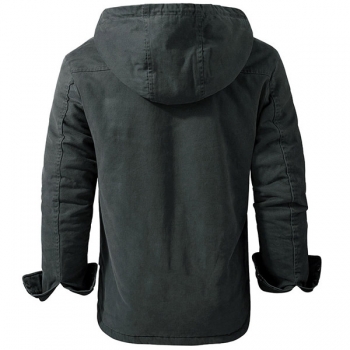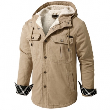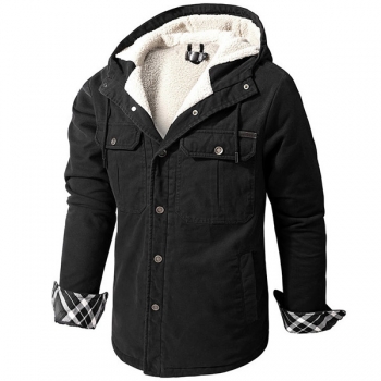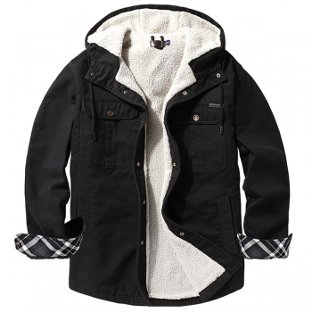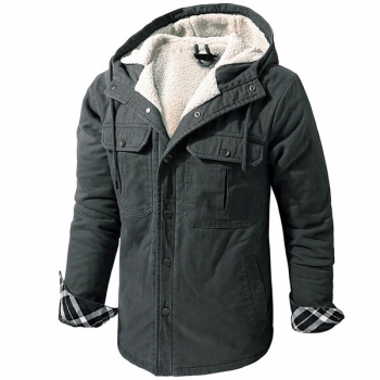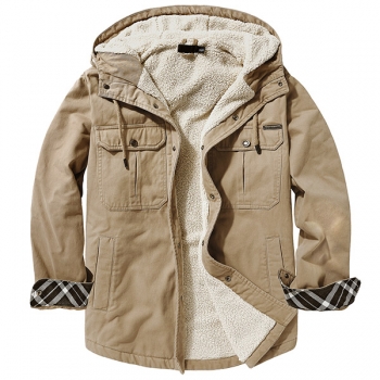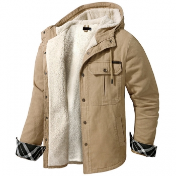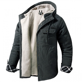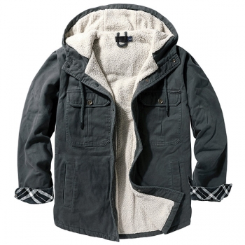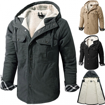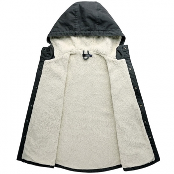 Fashion Solid Color Long Sleeve Hooded Plush Lining Man's Coat