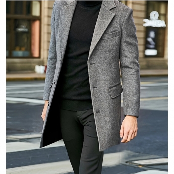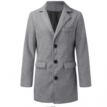 Herrkappa i ull – enfärgad, långärmad med kavajslag och slimmat snitt