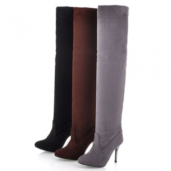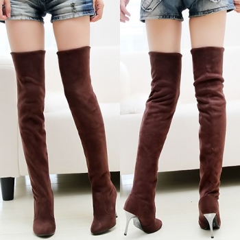 Överknästövlar för dam – enfärgade, spetsig tå och hög klack, moderiktig