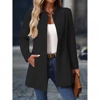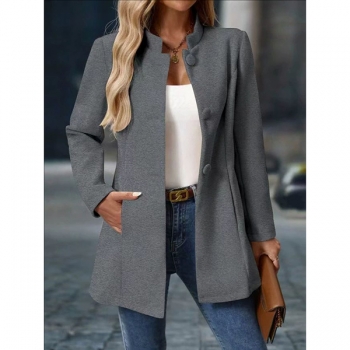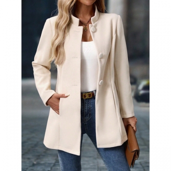 Jacka i enfärgad modell med ståkrage, lång ärm och knappslå framtill