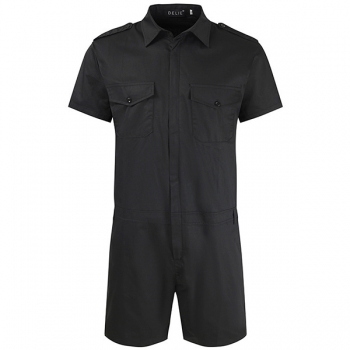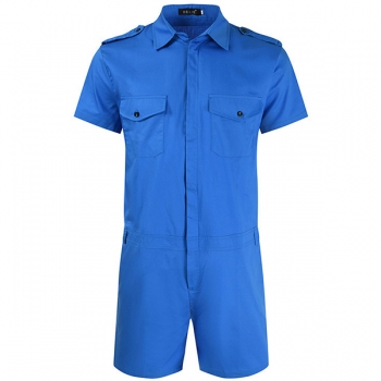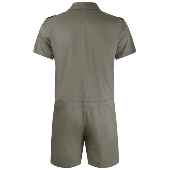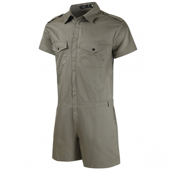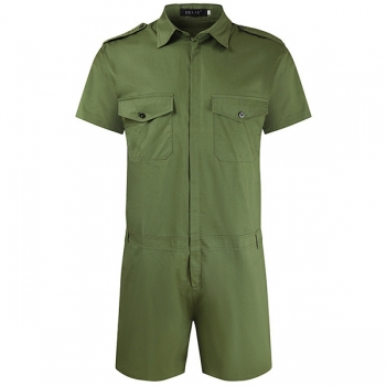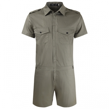 Stilren enfärgad romper med kortärmad ståkrage och fickor för män
