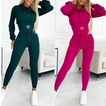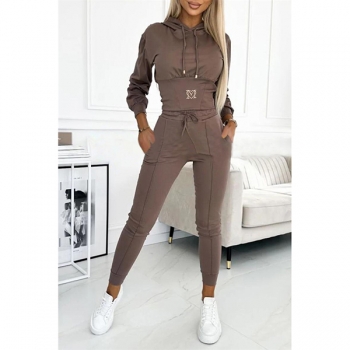 Trendigt enfärgat tvådelat set med hoodie och mysbyxor med dragsko