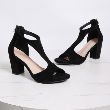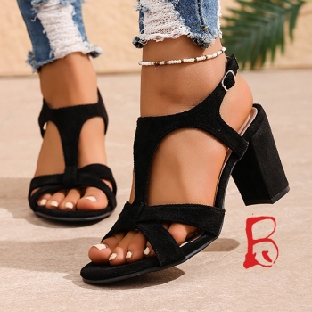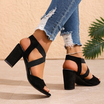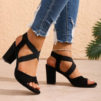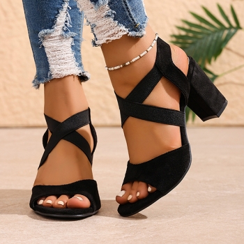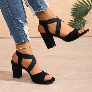 Trendiga sandaler med fyrkantig tå, korsade remmar och blockklack