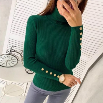 Trendig långärmad turtleneck-tröja med knappdetaljer