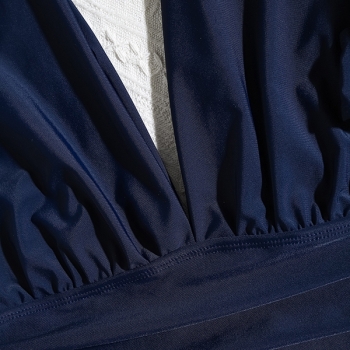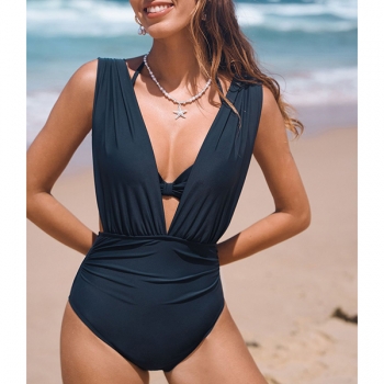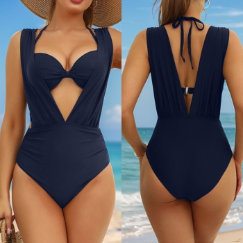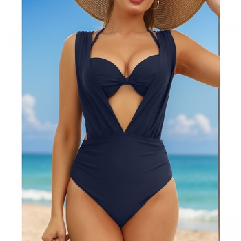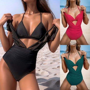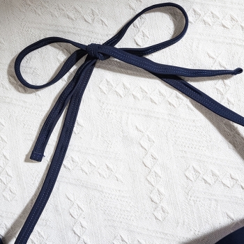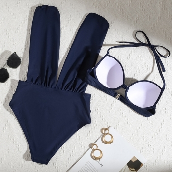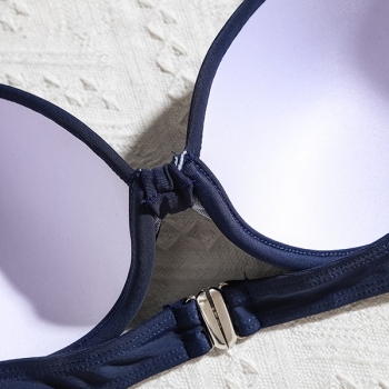 Moderiktigt tvådelat bikiniset med halterneck-topp och V-ringad baddräkt