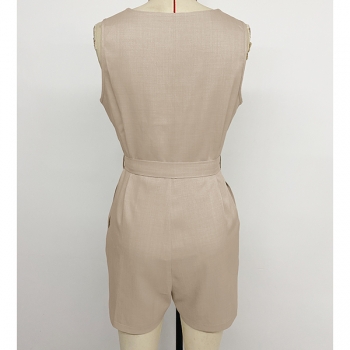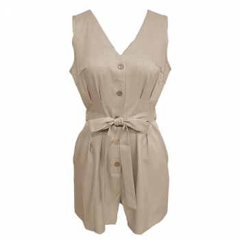 Dam V-ringad ärmlös playsuit med knyt i midjan – trendig sommarfavorit