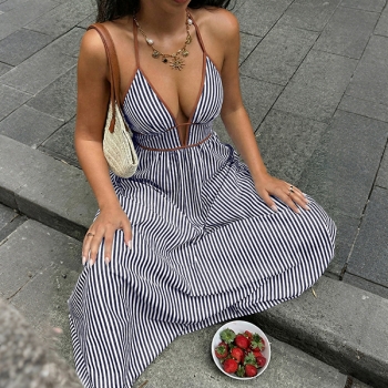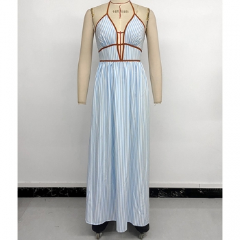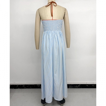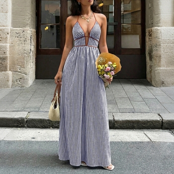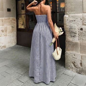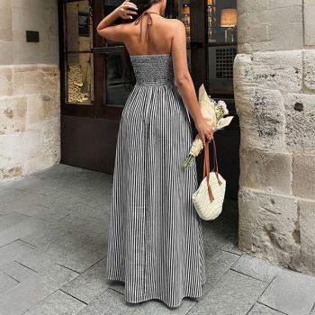Jumpsuit dam – trendig randig halterneck med V-ringning, hög midja och vida ben