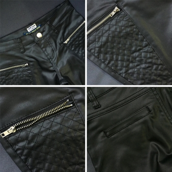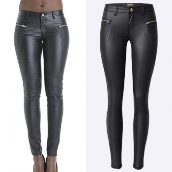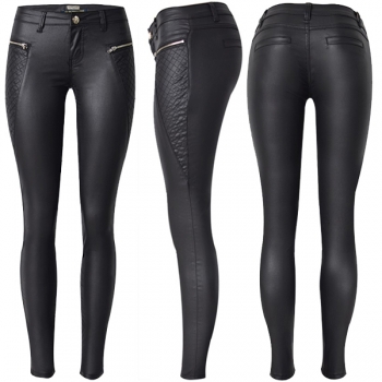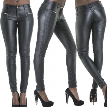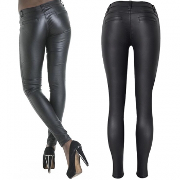 Modebyxor i PU-läder med låg midja och blixtlåsmontering