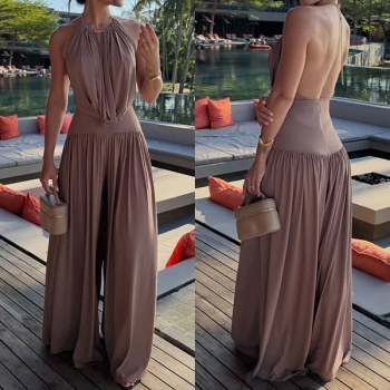 Tvådelat set – haltertopp och vida byxor, avslappnad stil