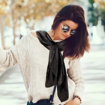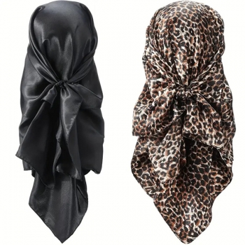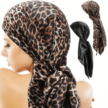 Leopardmönstrad huvudduk i tunn sidenimitation med matchande färgtoner