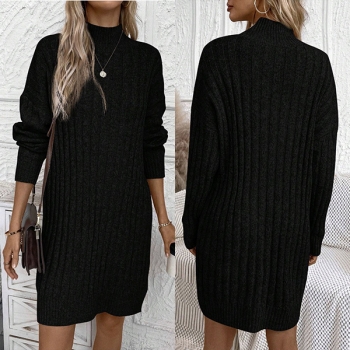 Moderiktig stickad tröja med lång ärm och hög halsringning