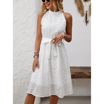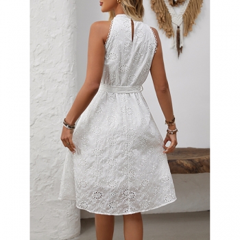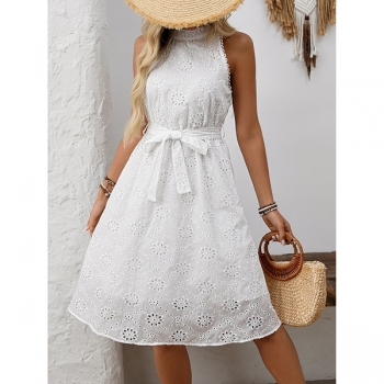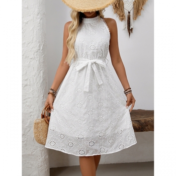 Somrig broderad halterneckklänning med markerad midja