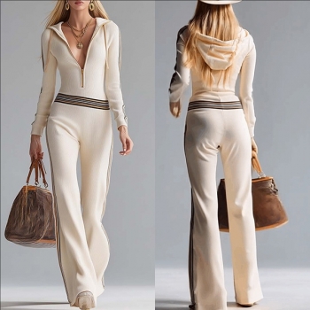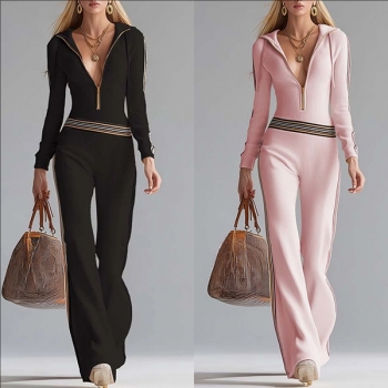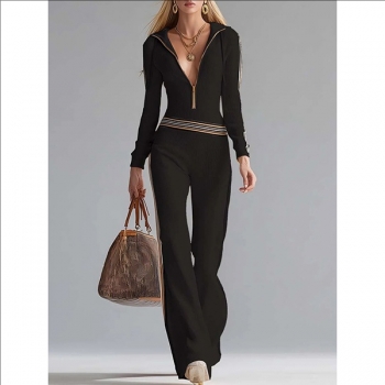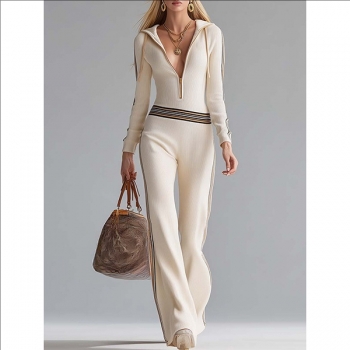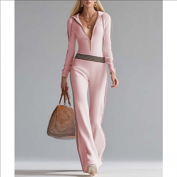 Jumpsuit med långa ärmar i ribbad stickning och kontrasterande paneler