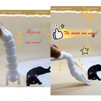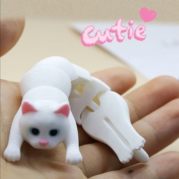 Mini 3D-ledad kattfigur – gullig vit och svart kattunge, poserbar i handstorlek, terapeutisk skrivbordsdekoration och stresslindrande kawaii-samlarobjekt, perfekt present till hemmakontoret