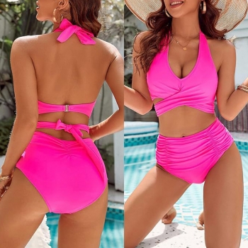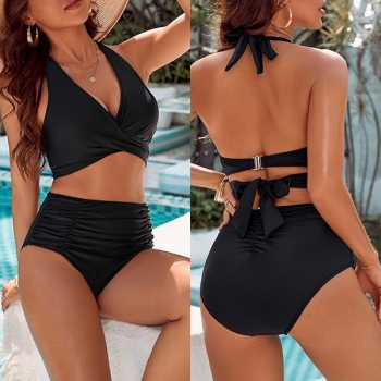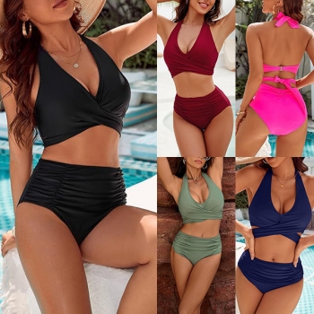 Bikiniset med hög midja, täckande passform och söt halterneck