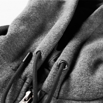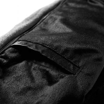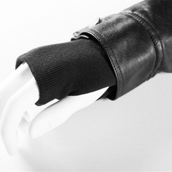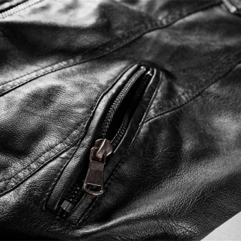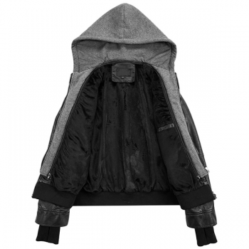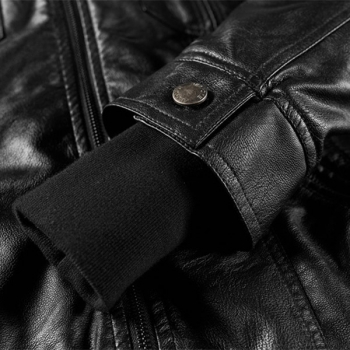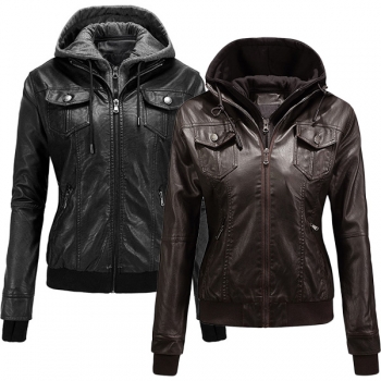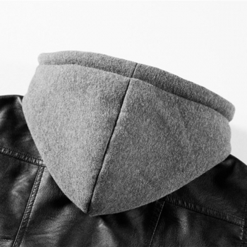 Modern jacka i PU-läder med avtagbar huva och ribbad mudd