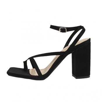 Sandaler med öppen tå, stabil blockklack och kantig tå