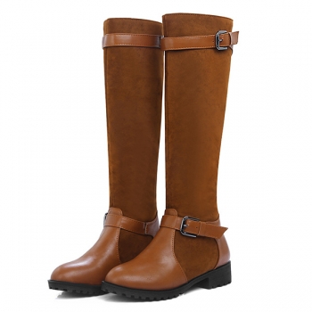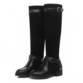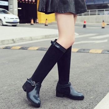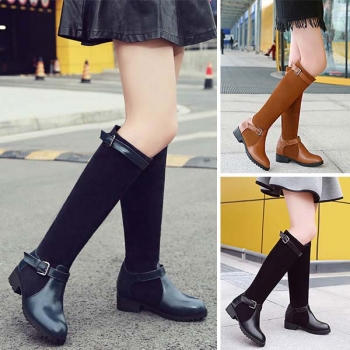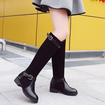 Retro Style Flat Heel Round Toe Knee-length Boots
