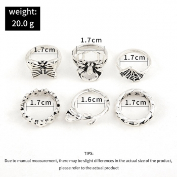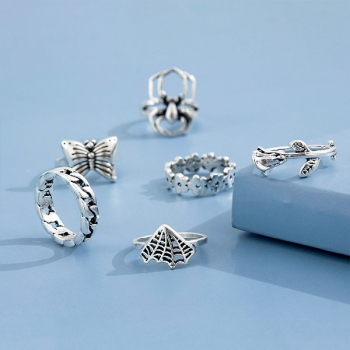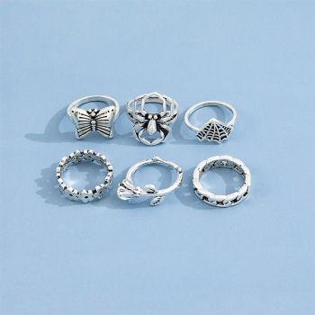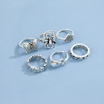 Retro Style Silver-tone Butterfly Flower Ring Set 6 pcs/Set