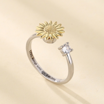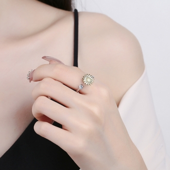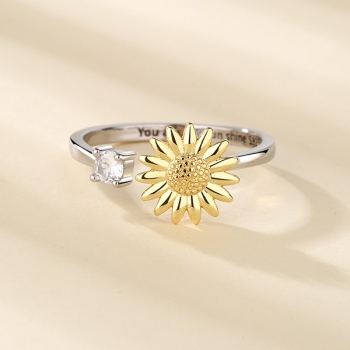 Snurrande ring med solrosblad och justerbart armband